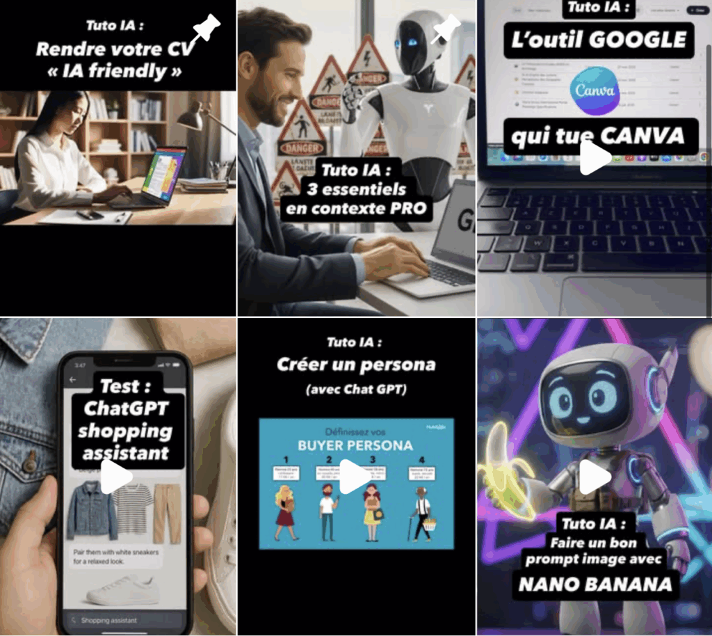 Dans le cadre de mes formations autour de l’IA, j’ai créé une quarantaine de micro-tutos sur des solutions « IA » sur un compte Instagram que j’ai monté pour mes étudiants… et c’est en accès libre (-> digitalstrategist.ia).